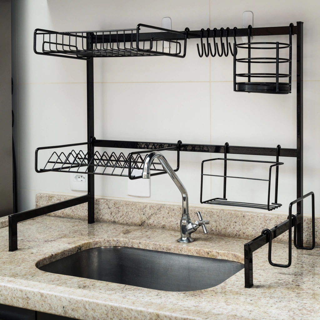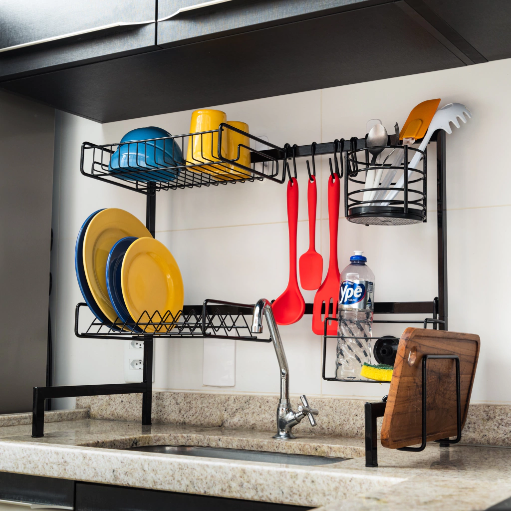Parece que mais vai atrapalhar do que otimizar, não é mesmo? Mas muito pelo contrário, este escorredor é uma excelente opção para quem tem uma pia pequena e busca deixar sua pia muito mais organizada.