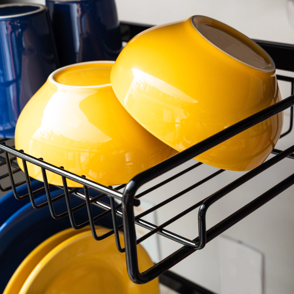 Como o acabamento do produto é em tinta epóxi, o tratamento antiferrugem que realizamos somado a esta tinta especial aumenta a durabilidade do escorredor de louça